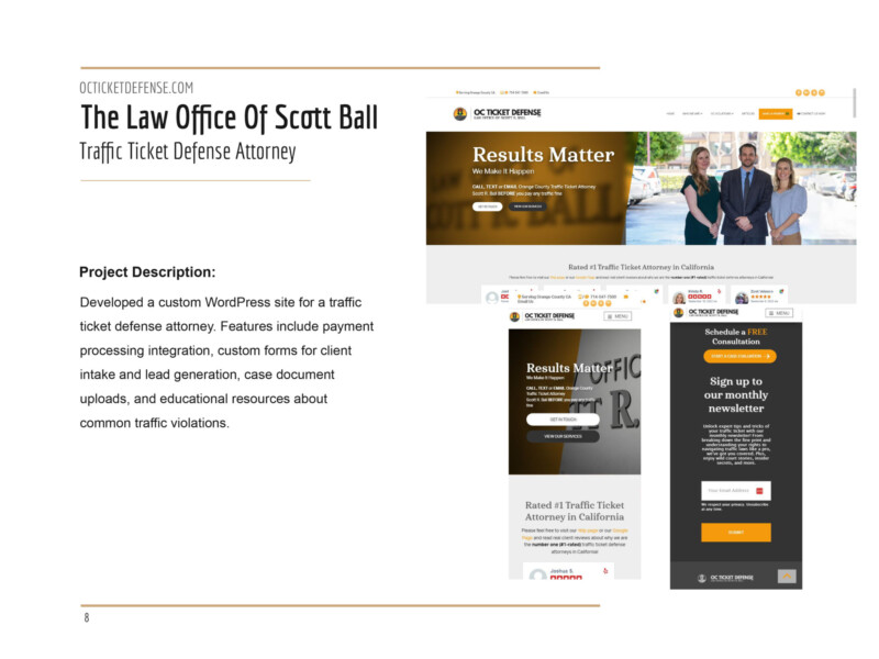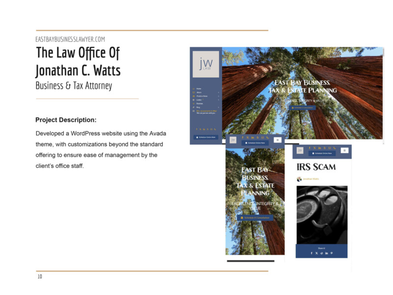 - Designed and developed over 300 custom WordPress websites and enterprise systems for clients, including law firms, municipalities, and national organizations.