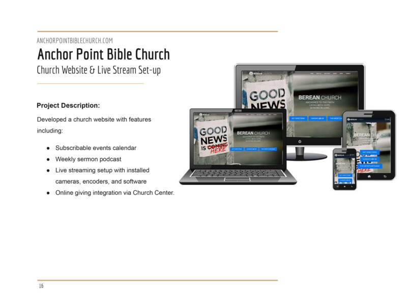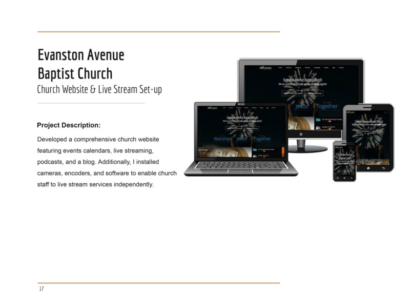 - Coordinated live-streamed events and managed multimedia production for services and outreach programs.
