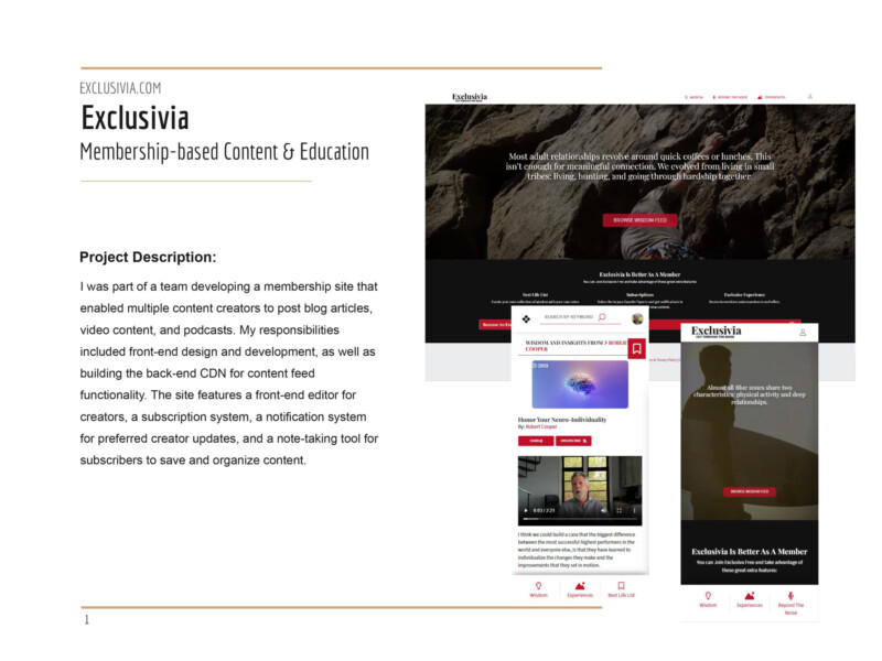- Developed and launched multiple custom websites and online learning communities, integrating advanced features like user dashboards and interactive content.